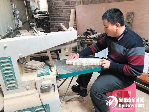“現在我都不敢接單了,怕接太多活做不完,就不好交代了。”黃小華邊操作機器在木板上雕 刻出精美的花樣,邊給記者介紹他最近的“生意”情況,黝黑的臉上露出了憨實的笑容。黃小華 是連平縣忠信鎮大坪村的貧困戶,在幫扶單位深圳市南山區粵海街道的幫助下,憑借自己的手 藝在家里開了個木雕手工作坊,現在生意做得紅紅火火,成了村里脫貧致富的“領頭羊”。