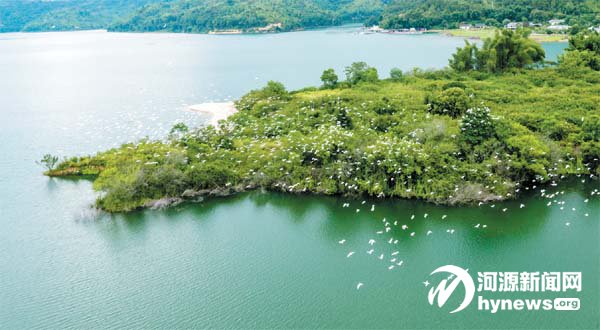 順著萬綠湖環(huán)湖公路 盤旋而下,遠眺,高聳的南 山綿延不盡,山青林茂;近 看,溫婉的萬綠湖煙波浩 淼,一碧萬頃。數(shù)千只白鷺 結(jié)隊而行,飛過山林、湖泊 與村落,翩然起舞,這是東 源縣新回龍鎮(zhèn)東星村秋日 里的一番美景。