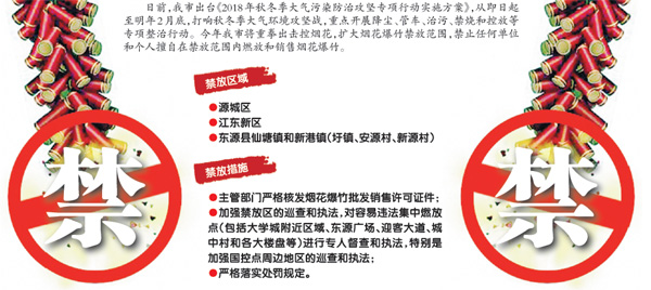 其中,我市擴(kuò)大了煙花爆竹禁放范圍,將源城區(qū)、江東新區(qū)、東源縣仙塘鎮(zhèn)和新港鎮(zhèn)(圩鎮(zhèn)、安源村、新源村)全部劃定為煙花爆竹禁放區(qū),禁止在禁放范圍內(nèi)燃放和銷(xiāo)售煙花爆竹。