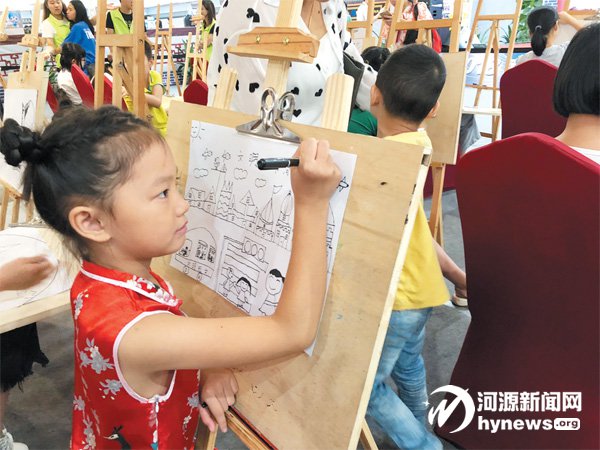 在昨日舉行的“文明城市·美麗家園”青少年現場涂鴉活動中,8歲的小女孩陳文婕認真畫著自己眼中的“文明河源”。她指著畫作告訴記者,乘客在文明巴士上禮讓座位,小朋友把垃圾扔進垃圾桶,志愿者扶著老奶奶過馬路……“這就是我們的城市,河源。”陳文婕認真地說道。