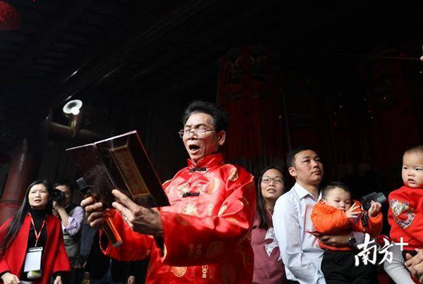 在忠信花燈文化節上,當地孩童在參與家訓文化傳承儀式。 謝鑫 攝