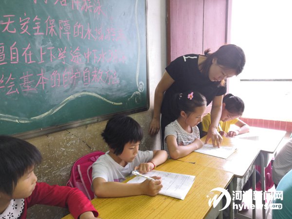 貝嶺鎮(zhèn)中心小學(xué)教師劉秀芳在課余為孩子們補(bǔ)課。