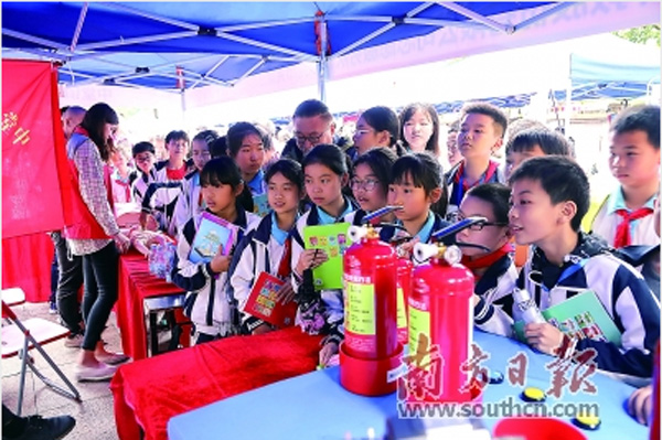5月6日,2019年“新時代文明實踐廣東‘七個一百’精品項目下基層東莞分會場活動”在東莞市中堂鎮潢涌村舉行。圖為學生們在志愿服務集市活動現場體驗各種志愿服務。南方日報記者 孫俊杰 攝