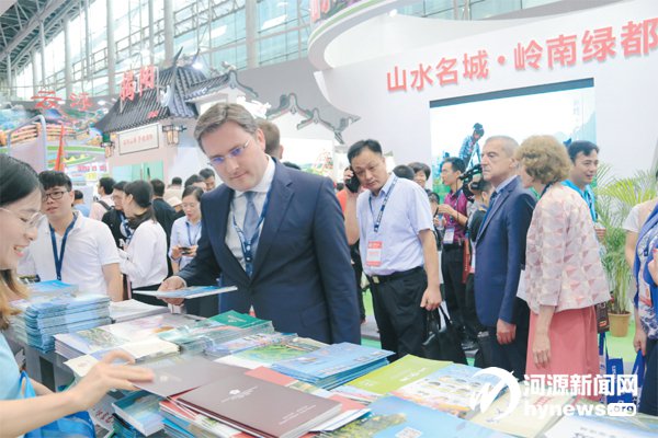 國內外嘉賓到河源展位參觀,了解河源文旅品牌。