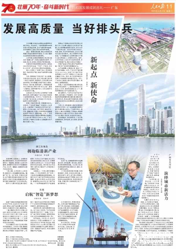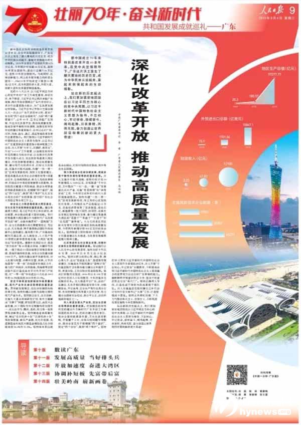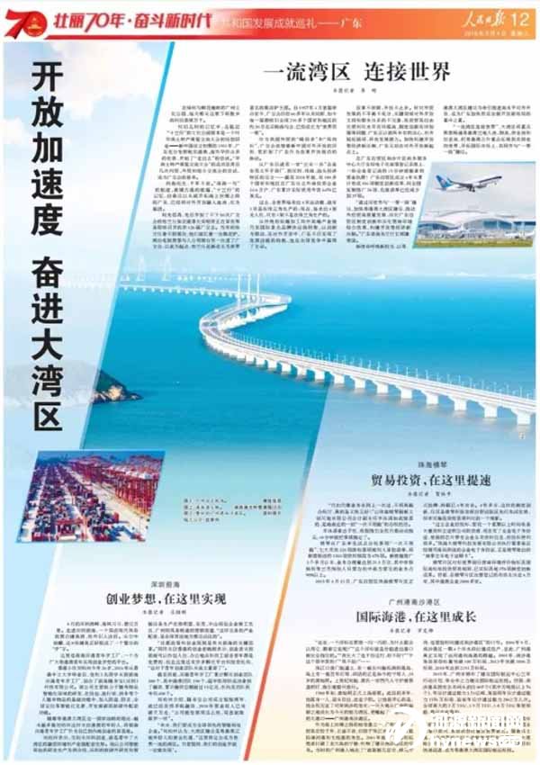 9月4日,人民日報(bào)推出《壯麗70年·奮斗新時(shí)代·共和國發(fā)展成就巡禮——廣東》專題報(bào)道。以6個(gè)版全方位聚焦新中國成立70年來廣東的發(fā)展成就,為廣東點(diǎn)贊。中共廣東省委書記李希、廣東省人民政府省長馬興瑞在人民日報(bào)發(fā)表署名文章《深化改革開放 推動(dòng)高質(zhì)量發(fā)展》。