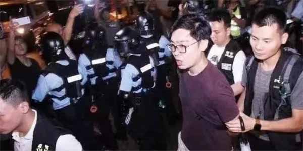 猶如被捕鼠器夾住的老鼠,戴上鐐銬的陳浩天內(nèi)心翻滾著憤怒與絕望。見到聞訊而來的各路記者時,他情緒失控地大喊,“唔使驚白色恐怖,唔使擔(dān)心俾人啦!”