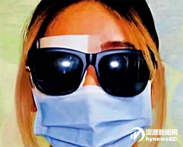 視頻中的女子身穿黑衣,戴墨鏡及口罩,右眼蓋上紗布,聲音還經過后期處理,根本分辨不出該女子的真實身份。