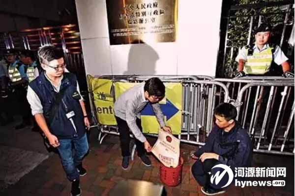 2019年7月21日下午,一群亂港暴徒借“和平游行”之名實(shí)施暴力沖擊,公然圍堵香港中聯(lián)辦大樓,投擲油漆彈玷污國徽,還在中聯(lián)辦門牌旁涂上侮辱國家和民族的符號,聲言成立“臨時立法會”。