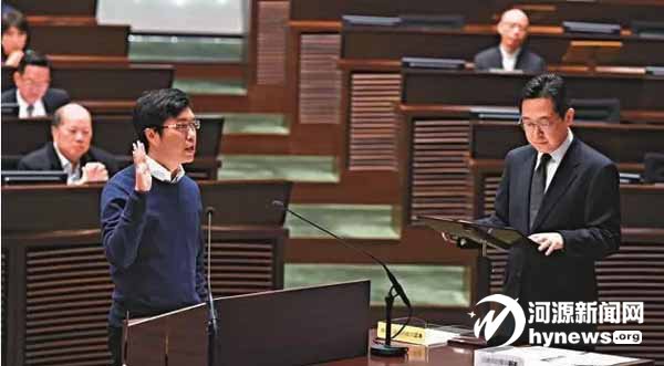 曾燒基本法的區(qū)諾軒宣誓就任時,竟然一字不差地“乖乖”讀出法定誓詞。(大公報(bào))