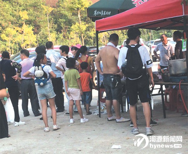在桂山風景區,記者見到,售賣著各類美食的攤位前圍著不少游客,除了面前的美味佳肴以及歡笑聲外,與場面不符的,還有散落在地下的礦泉水瓶、一次性碗筷等。一些游客毫無忌諱,吃完之后將手里的筷子、袋子扔在地上。美食攤檔老板表示,攤位及景區其實放置有垃圾桶,但一些游客存在“吃完隨手扔”的壞習慣,他們看見也很無奈,只能上前勸阻。