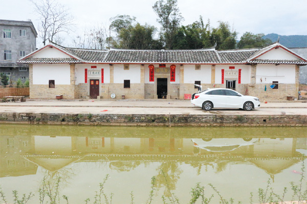 暮色中,完成外立面改造的纘先樓在樓前池塘倒影下顯得格外巍峨,尤其是樓前的大紅對聯“迎春接福萬事勝意”把整棟樓裝扮得很是喜慶。像這樣完成外立面改造的舊民居,北坑村有上十處。張仕強說,這外立面改造,全村村民很支持,外立面改造工程農戶100%參與。