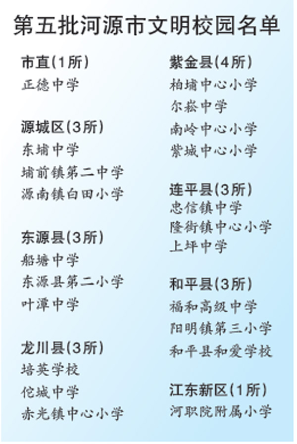 本報(bào)訊 記者 劉曦 為推動(dòng)文明校園創(chuàng)建工作深入開展,不斷提升我市未成年人思想道德建設(shè)工作水平,市文明委前日授予正德中學(xué)等21所學(xué)校第五批河源市文明校園榮譽(yù)稱號(hào)。