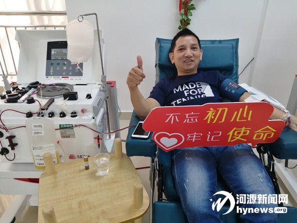 2006年,高勇軍從家鄉(xiāng)梅州五華來到河源,第二年,他就開始參與看望老人、助殘、助學(xué)等公益活動。在身邊志愿者的帶領(lǐng)下,高勇軍開始加入無償獻(xiàn)血的隊伍中。如今,他也是我市應(yīng)急獻(xiàn)血志愿者,只要病人有需要,他毫不猶豫擼起袖子就上。有一次,高勇軍正在銀行排隊辦事,接到血站電話,稱有患者急需B型血小板,他二話不說,立刻趕往血站進(jìn)行捐獻(xiàn)。看著血液在密封的管道內(nèi)循環(huán),高勇軍知道,有一位病人將得到及時搶救。