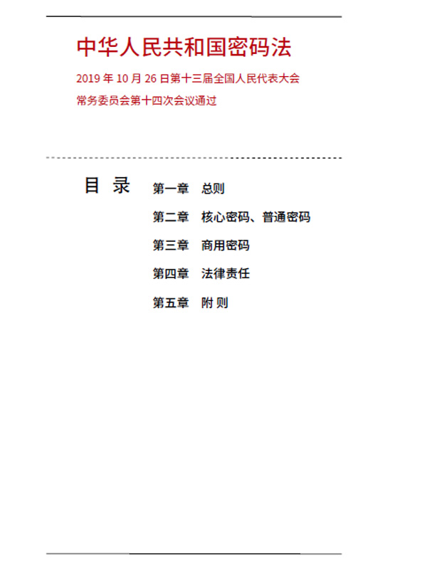 第一條 為了規范密碼應用和管理,促進密碼事業發展,保障網絡與信息安全,維護國家安全和社會公共利益,保護公民、法人和其他組織的合法權益,制定本法。