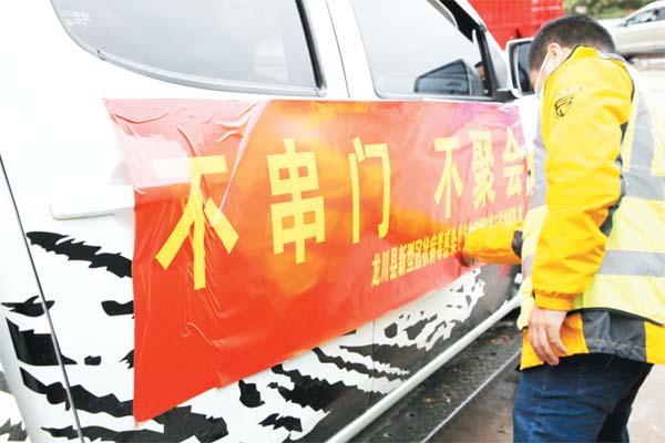自駕越野車上插上隊旗、裝上喇叭器、調(diào)試音量、張貼標(biāo)語、列隊前行……當(dāng)天上午9時左右,20多名身著“龍川汽摩應(yīng)急救援”字樣衣服、戴著口罩的志愿者,在為車載廣播公益宣傳工作做準(zhǔn)備。之后,貼著醒目紅色標(biāo)語的車隊兵分?jǐn)?shù)路,從龍川縣城沿江路出發(fā),一路上播放著疫情防控內(nèi)容的山歌以及快板等。
