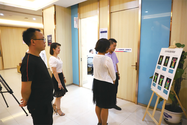 與會嘉賓排隊體驗醫(yī)用紅外熱成像儀器。
