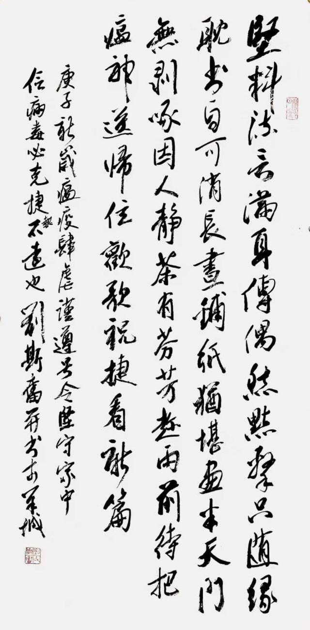 近日,茅盾文學獎得主、著名作家劉斯奮“謹遵號令,堅守家中”,揮毫寫道: