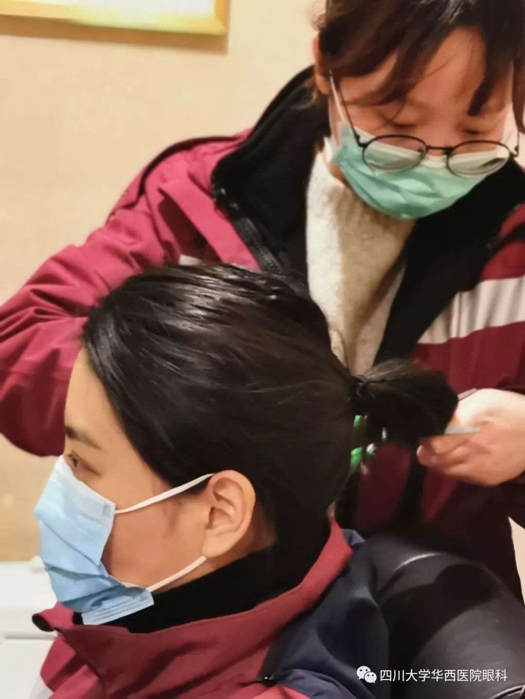 2月7日8:00,下姆一早就來到了醫院參加了出征前的培訓、注射免疫球蛋白、領服裝等出征前的準備。姐妹們也在此時見到了微笑而從容的下姆。姐妹們問她是否緊張后悔,她說道:“作為華西的一份子,作為眼科的一份子,在那么多份請愿書里被選中,我感到自豪”。