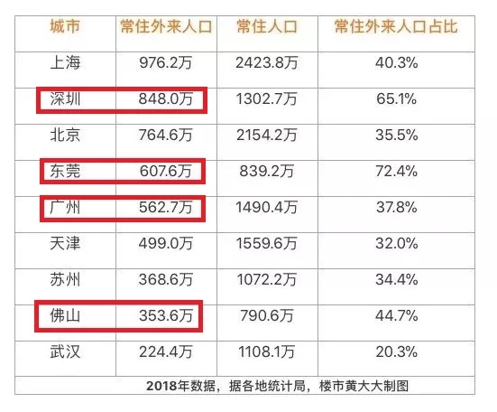 要知道,節后返城的高峰一殺到,全國的人潮都往廣東跑。當時,全國常住外來人口超過500萬人的城市一共有5個,廣東就占了3個。深圳、東莞、廣州、佛山都排在前十名。