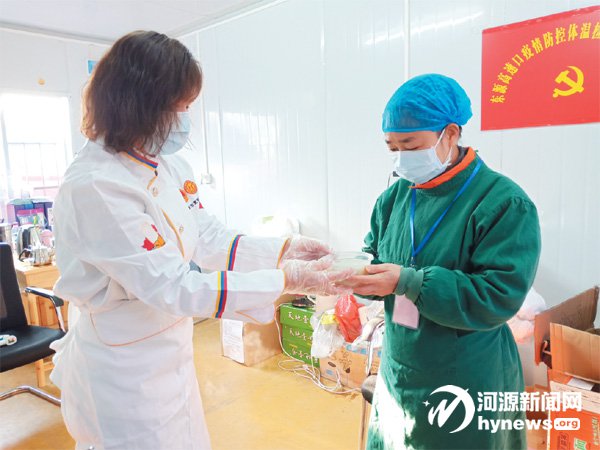 “來,同志們,趁熱吃吧,你們辛苦了!”早上8時,送餐車就來到了東源高速出入口的疫情防控體溫檢測點(diǎn)。市餐飲協(xié)會秘書長鄒紅桃?guī)ьI(lǐng)著幾名“粵菜師傅”,從送餐車上搬下了一桶熱粥,用一次性碗盛好后遞給了值守的一線工作人員。“這粥好靚!”熱騰騰的香菇雞肉粥暖胃又暖心,在寒冷早春的清晨更顯得美味無比,防疫一線工作人員紛紛稱贊師傅們的手藝,并感謝他們的關(guān)懷。