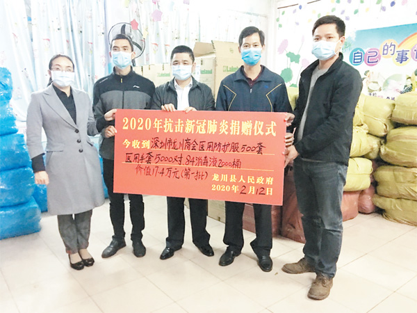 廣東紐恩泰新能源科技發展有限公司董事長趙密升獲悉龍川缺乏醫用口罩等醫療物資,立馬在越南、北京等地緊急采購2萬只口罩馳援龍川。深圳平湖龍川聯誼會會長陳劍輝通過深圳企業交流平臺尋找采購渠道,幫助龍川采購消毒液等醫療物資。同時他還組織發動平湖龍川聯誼會鄉親,籌集1.5萬元善款購買了600瓶消毒酒精,派人派車從深圳送到龍川,為龍川防控疫情提供消殺物資。