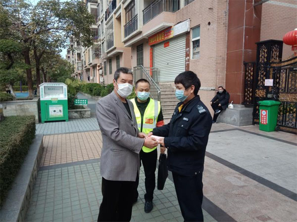 “師傅,這段時間辛苦你們了,小區(qū)防疫大家都有責任,這個也是我自己的一點心意,你們也要做好防護措施。”2月19日上午,位于市區(qū)文明路的萬廈虹景花園小區(qū),業(yè)主鄒佛清經(jīng)過物業(yè)管理處時,從身上掏出了1000元塞給了工作人員,向他們表示敬意。