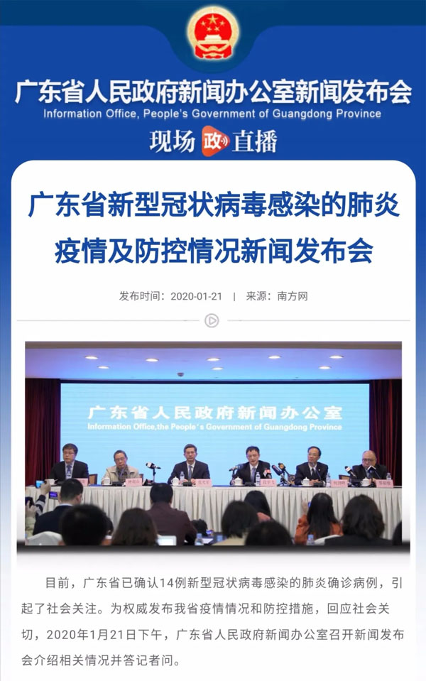 不光如此,從1月27日起,廣東省政府每天召開疫情防控例行新聞發布會,邀請醫療專家和各部門、地市領導以及參與防控的村委會干部,介紹廣東疫情情況,回應民眾關切話題,消除民眾疫情恐慌情緒。