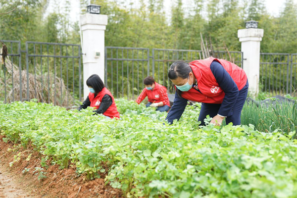 志愿者到農(nóng)場為福利院老人采購新鮮蔬菜。