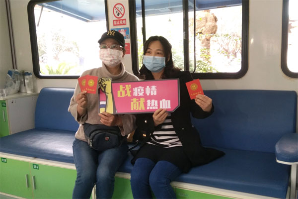 志愿者們參加無償獻(xiàn)血。