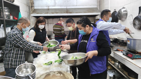 志愿者們幫手準(zhǔn)備愛心宵夜,并送到防疫站點(diǎn)給防疫員。
