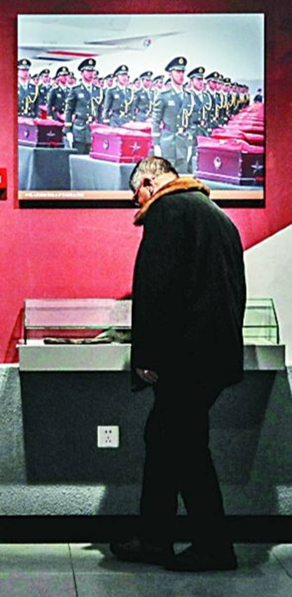參觀者在沈陽抗美援朝烈士紀念館內參觀。新華社發