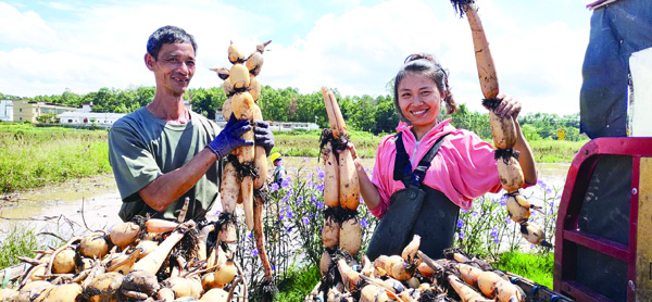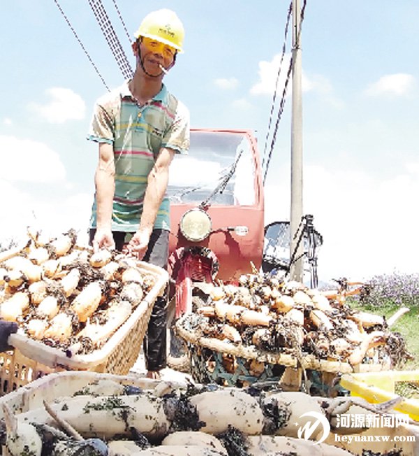 連平縣三角鎮(zhèn)石源村100多畝蓮藕基地迎來大豐收。昨天,記者在現(xiàn)場看到,不少村民在齊腰深的荷塘里挖藕,一些村民還忙著洗藕、分揀、裝筐,一派熱火朝天景象。石源村村支書黃志銀告訴記者,由于生態(tài)良好,石源村出產(chǎn)的藕品質(zhì)好,價格也不錯,一直俏銷四方,目前僅剩下10多萬公斤有待銷售。
