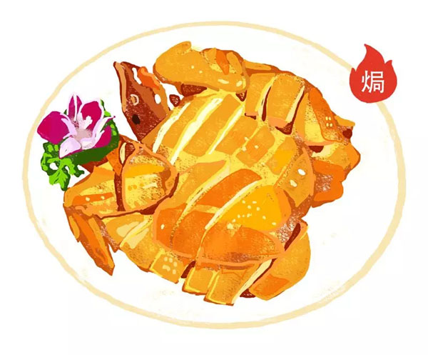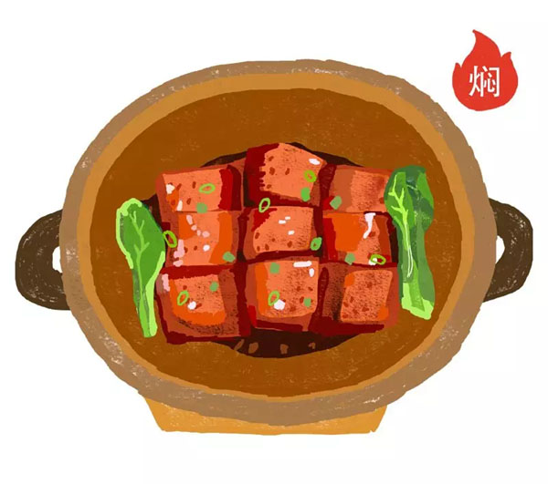 “粵菜師傅•幸福菜譜”收納了廣東十道傳統經典菜式,以手繪形式展現菜品樣貌,同時詳細記錄食材備料、烹調方法和制作過程,整體設計簡潔清新、通俗易懂。菜品按照廣東春節菜譜的習慣,用富有美好寓意的詞語進行命名,分別為金雞報喜、笑口常開、添丁添財、榮華富貴、家肥屋潤、年年有余、福壽雙全、春意盎然、金玉滿堂、團團圓圓,如紅燜肉這道菜以廣東俗語“家肥屋潤”命名,寓意生活富裕。在用料上,菜譜選取了廣東地區典型但外地也方便購買的食材,如雞、豬肉、豆腐、菜心等,兼顧了不同地區的食材條件,如“年年有余”這道菜的食材專門寫為“鮮魚”,群眾可以根據當地情況購買不同的魚類,烹飪方式均可適用。在做法上,也更加親民家常,如“金雞報喜”這道菜品,就是以家家戶戶都有的電飯煲為主要烹飪用具,只需將腌制好的雞放入電飯煲用“煮飯檔”就可以進行制作。