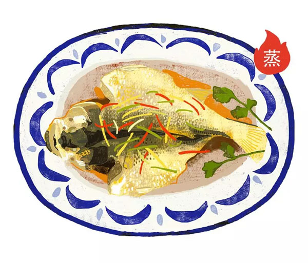 4、將紅椒絲、姜絲和蔥絲放在魚身上,撒上胡椒粉,用燒熱的油淋上,放蒸魚豉油即可。