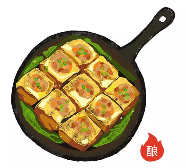 3、燒熱鍋,用油將豆腐煎至兩面金黃,加少許水和調味料,稍燜,勾芡。