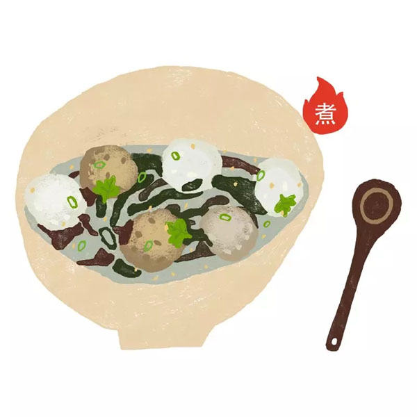 主料:牛肉丸300克、魚丸300克、上湯1000克、紫菜5