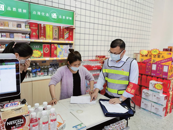 “2004戶,經過第一輪排查,發現實際入住800多戶。”陳桂華把組員分成9個小組,精準對接居民,入戶排查、測體溫、發傳單。該小組還有守卡口的任務,他帶領隊員在支援十五區卡口排查工作中排查出社區第一例重點疫區返河復工人員4人,防控成績顯著。