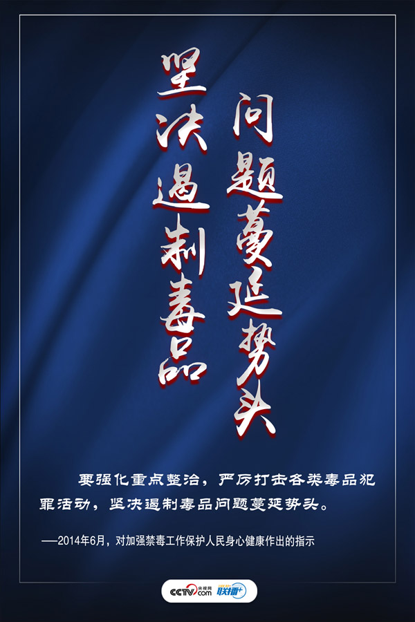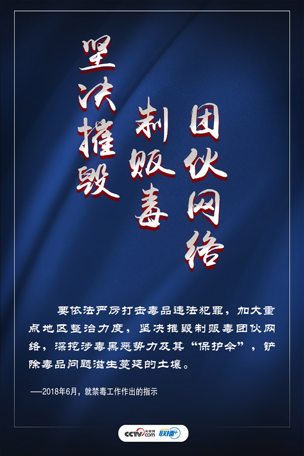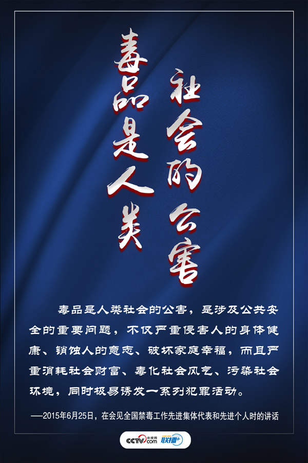 禁毒工作事關國家安危、民族興衰、人民福祉。近年來,習近平總書記秉持以人民為中心的發展思想,多次就禁毒工作發表重要講話,將全民禁毒提升至新的高度。央視網《聯播+》特進行梳理,與您一起學習領會,提高禁毒意識,堅定打贏禁毒人民戰爭的信心。