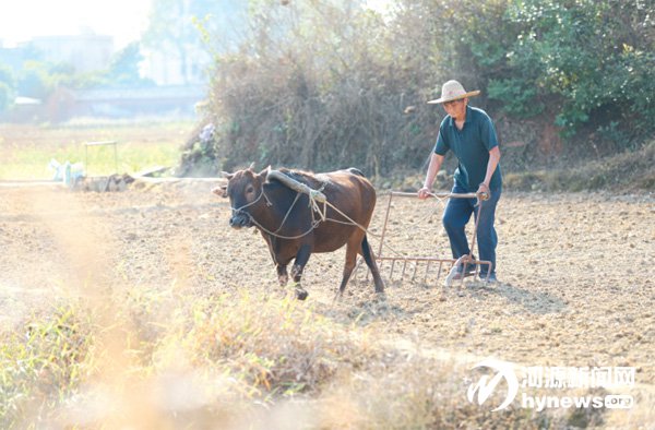 在陂角村的農(nóng)田里,村民穿著水鞋,輕扶鐵犁,在吆喝聲中,耕牛打著沉重的噴鼻聲拉著犁鏵一路向前,泥土快速向兩邊翻滾開來。另一邊,在犁好的田里,村民彎著腰,熟練地播撒下花生種子。更有村民開著犁田機(jī)進(jìn)行春耕生產(chǎn),伴隨著機(jī)器的轟隆聲,希望今年有更好的收成。耕牛、農(nóng)夫、機(jī)器、春蟲低鳴,構(gòu)成了一幅春回大地的粉墨畫卷。