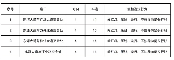 東源縣公安局關于啟用新河大道與廣場大道路口及東源大道沿線等四個路口交通技術監控設備的通告