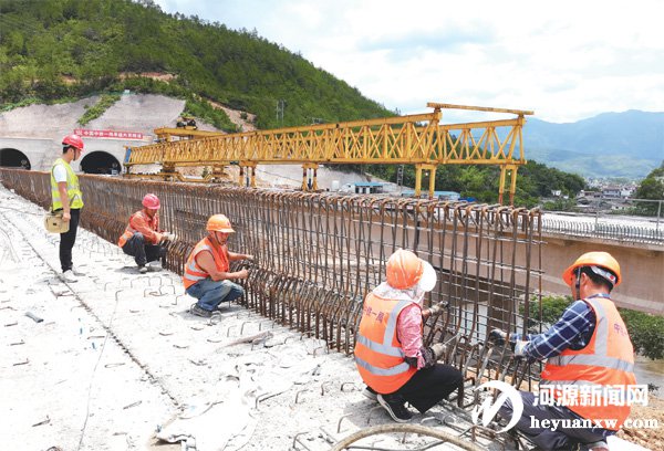 高架上,頭戴紅色安全帽的工人正在埋頭苦干;隧道內,機器的轟鳴聲交織,呈現出一派熱火朝天的景象,這是連平內莞隧道的施工現場。