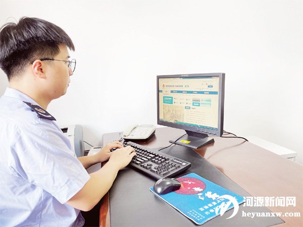 龍川縣稅務人員使用印有廉潔警示語的鼠標墊辦公。