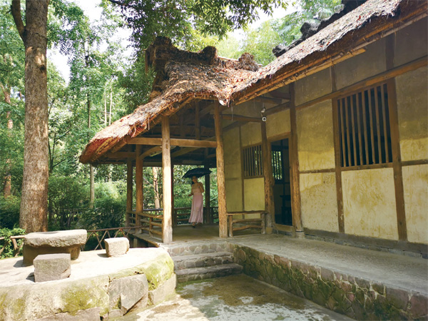 隨后,我們轉(zhuǎn)至掩映于竹木中的草堂。屋邊的石頭上寫(xiě)著作家、翻譯家馮至的一句話:人們提到杜甫時(shí)盡可以忽略了杜甫的生地和死地,卻總忘不了成都的草堂。