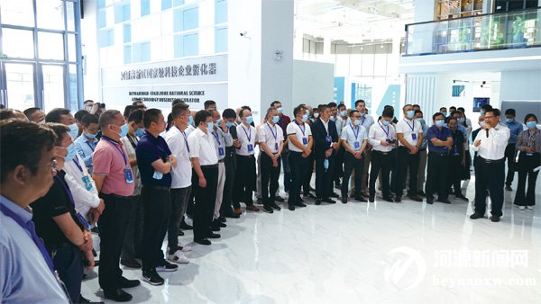 與會嘉賓參觀河源高新區(qū)國家級科技企業(yè)孵化器。