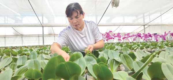 在深圳大鵬新區對口幫扶產業源城區埔前鎮坪圍村蘭花產業基地里,已脫貧的周村小組村民肖惠芹正忙活著為長勢茂盛的蘭花拔草。她對現在的生活十分滿足,臉上的笑容與怒放的蝴蝶蘭相互映襯,整個大棚里也洋溢著滿滿的幸福感。作為單親母親,再加上工作不穩定,她一個人拉扯兩個孩子極為不易,2015年被列為建檔立卡貧困戶。