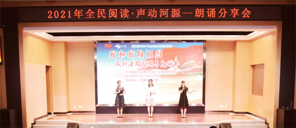 為慶祝中華人民共和國(guó)成立72周年,大力弘揚(yáng)愛國(guó)主義精神,近日,由市文廣旅體局主辦的“2021年全民閱讀·聲動(dòng)河源——朗誦分享會(huì)”在市圖書館一樓報(bào)告廳舉行。