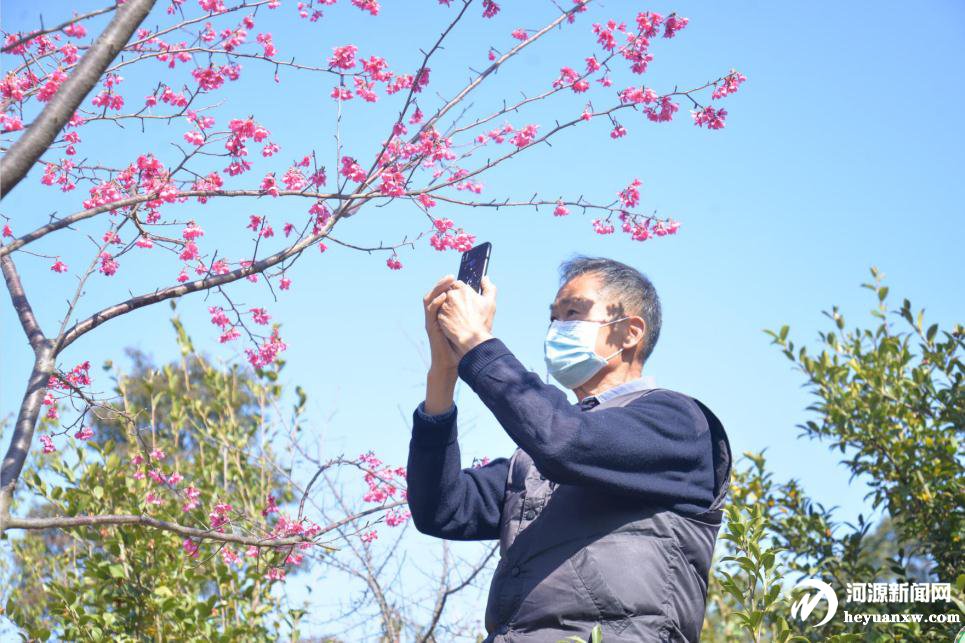 除了市區(qū)各大公園種植有櫻花樹(shù)外,不少景區(qū)也通過(guò)種植季節(jié)性花樹(shù),打造網(wǎng)紅打卡點(diǎn)吸引游客。這不,東源縣黃龍巖畬族風(fēng)情旅游區(qū)內(nèi),周邊不少居民同樣是被這一抹櫻花紅吸引,見(jiàn)到一株株盛開(kāi)的櫻花,都忍不住拿起手機(jī)拍攝下這最美好的春天景色。
