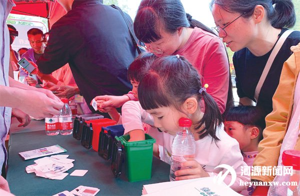 小朋友參與現(xiàn)場垃圾分類小游戲。