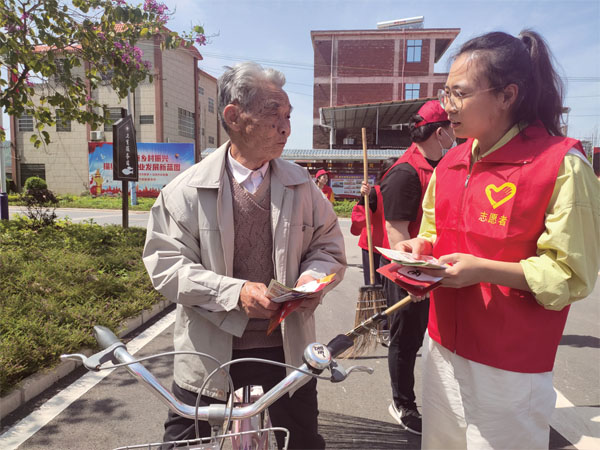 臨江鎮(zhèn)團(tuán)委組織志愿者進(jìn)村宣傳。