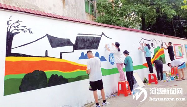 大學(xué)生熱情參與鄉(xiāng)村美麗墻繪活動(dòng)